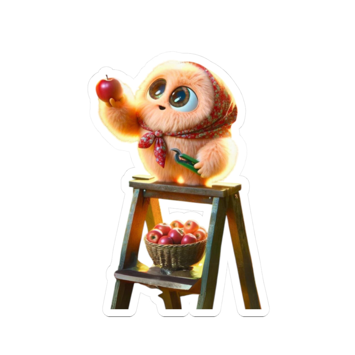 Celebrate cozy moments with the Apple Orchard Monster! This fluffy orange monster, wearing a patterned scarf, climbs a little ladder to pick shiny red apples and place them into a basket. With wide, sparkling eyes and a sweet expression, it’s the perfect sticker for anyone who loves fall, nature, or whimsical monster magic.